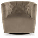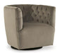 This swivel accent chair balances ultra-soft seating with a luxe appearance. Settle into the barrel back and indulge in its velvet fabric. Keep up with conversations with a sleek 360-degree swivel. This chair is created with both functionality and affordable luxury and in mind—how perfectly suited to your contemporary lifestyle.