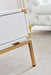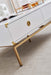 - MDF/WHITE LACQUER/STAINLESS STEEL BASE/GOLD MIRRORED FINISH