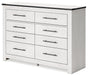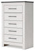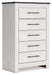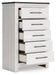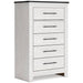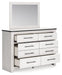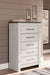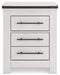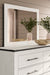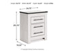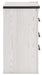 This bedroom package harmonizes effortlessly with your farmhouse-chic approach to contemporary style. Curate your space with the charmingly classic look of its white rustic finish. Faux metal banding and nailhead corner accents infuse the clean-lined set with delightful vintage character.