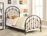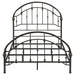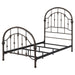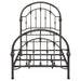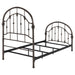 Add timeless appeal to your bedroom with this vintage-inspired metal bed frame, finished in a rich dark bronze for added sophistication. Featuring arched headboard and footboard designs with intricate detailing, this frame is crafted from heavy gauge metal for durability. Secure metal slats provide stable support for a box spring and mattress, combining elegance with functionality. Perfect for traditional or modern bedroom styles.