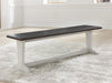 Make a farmhouse-inspired statement with this dining bench. It's beautifully crafted with a clean, classic two-tone finish and a thick planked effect. Making room for the whole family, this bench sports a casually comfortable vibe.