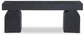 The solid craftsmanship and contemporary style of this bench make it the perfect accent piece in your modern living room, home office or entryway. Its lightly sandblasted effect exudes a decidedly on-trend vibe. Oversized decorative legs add an upscale art gallery quality.