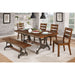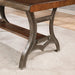 Dark metal and warm wood tones redefine industrial design with this exquisite dining bench.