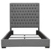 This exquisite, four-piece bedroom set is the ultimate in casual glamour. With loads of convenient storage space, it's also appealingly versatile. Button tufting adorns the headboard for a chic, trendy appearance. Its solid wood legs are finished in rich cappuccino to complete its design in style. Complete with a bed, nightstand, dresser, mirror, and chest, this set has all you need for an attractive bedroom upgrade.