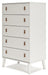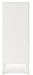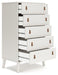 Dare to take minimalism to the max. This chest of drawers has an air of sleek simplicity thanks to its white painted finish with subtle replicated wood grain. Magnificently mod splay legs are a compelling complement to the streamlined design. And with two sets of faux leather drawer pulls that allow you to customize the chest to suit your space, there's no doubt about it: This contemporary piece is sure to become a classic.