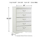 This chest of drawer's crisp cottage white gives traditional Louis Philippe profiling a delightful style awakening. The look is timeless. The feel? Right at home. Five smooth-gliding drawers with antiqued bail pulls beautifully accommodate.