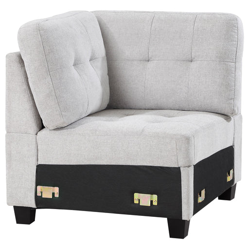 Bridge two modular sectional pieces together effortlessly with this modern corner chair, designed in an easy-to-maintain bright pearl performance u...