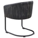 Celebrate eye-catching style in your dining room with this 5-piece dining set from the Aviano collection. A round tempered glass tabletop makes the most of available space, while highlighting the sculptural appeal of the table base. The table base displays an exquisite design of curves meeting around center rings all in a rich gunmetal finish. Cushioned barrel shape chairs are plushily upholstered in supple anthracite leatherette for the ultimate comfortable dining experience. This set is the perfect space-saving solution for a casual contemporary dining room.