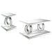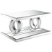 Transform your living room with this glamorous mirrored coffee table set. Featuring bases of interconnected dual rings adorned with dazzling acrylic crystals, every surface is wrapped in sleek mirrored panels with softly beveled edges. Designed to exude Hollywood Regency vibes, this set offers a chic and refined aesthetic, perfect for modern interiors.