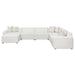 Create your ideal sectional configuration with this modern armless chair, upholstered in an easy-to-maintain pearl performance fabric across a foam padded pocket coil seat and low-profile attached back. A thick bottom seat rests on hidden black round legs, lending a hint of contrast and a clean, seamless silhouette.