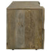 Nestle your TV atop this 70" media console, where the artistry of mango wood meets modern functionality. The rich, textured grains of the wood are arranged in a captivating veneer parquet, creating an intricate herringbone pattern that dances across the two door cabinets. This design not only adds a visual rhythm to your living space but also a tactile story of craftsmanship. The harmonious pattern, a time-honored classic, offers both a sense of history and contemporary flair. This TV stand accommodates TVs up to 80" and showcases the natural beauty and enduring charm of mango wood.