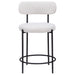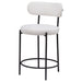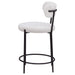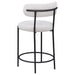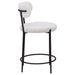 Your kitchen island or counter table gets an instant upgrade with this set of two modern barstools. The pair features contemporary boucle upholstery in a neutral hue over foam cushions for comfort. Metal framing features a black finish and provides excellent support and durability with slim legs and supports that create a sleeks silhouette. Each counter stool showcases round seats and curved backrests for excellent comfort and support while enjoying a meal or catching up with the family. Finally, a ring footrest provides plenty of support and a charming touch of character.