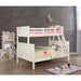This item takes a slightly more traditional approach to the bunk bed genre. The panel styled head and foot boards have a crowned top and vertical planking that carries a sophisticated air. An attached ladder and sturdy guard railing adds safety. The matching trundle features a drawer face edifice so you can conceal another mattress under the lower bed platform. This collection is all about space saving design and a touch of country charm that both you and your kids will love.