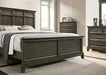 HOUSTON Cal.King Bed, Gray, 90 1/4"L X 82 3/4"W X 60"H, 151.8lbs. A perfect anchor piece for your master suite, this grand bedroom commands attention. With bold details and intricate crown molding accents, the large, panel style headboard towers over the wooden rubber wood bed frame. Similar crown molding motifs can be found on the case goods. On the hardware side of things, the rustic-inspired appliance bar pulls are finished in a shade of pewter.