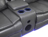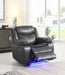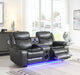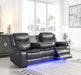 Reclining living room set with Bluetooth speakers, USB, USB-C charging ports, wireless charging pad and LED lights. Set includes Sofa and Loveseat.