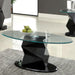 These lacquer finished modern pedestal tables with a distinct angular base design and glass tops are available in black or white.