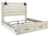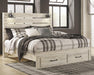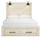 What a delightful take on rustic industrial style. Whether modern loft or modern farmhouse, this queen panel storage bed makes itself at home. The wispy whitewash palette enhances without covering the grain for that weathered look you crave. Love to read in bed? You’re sure to find the retro-chic light sconces and USB plug-ins on the open-slat style headboard such a bright idea. Elongated metal drawer pulls on the footboard storage drawers elevate the aesthetic.