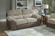 Sit back and relax in comfort with the McMahon loveseat. This loveseat has more than meets the eye. The stylish two tone fabric usage with extremely soft polyester fabric on the seating area is easy to see. The hidden function of gentle gliding motion takes your relaxation to the next level. Seating constructed of individually pocketed coils encased in foam and topped with a layer of cool gel infused memory foam creates an extremely comfortable and supportive seat. The McMahon is proudly designed and manufacutred in the USA!