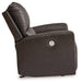 Experience modern luxury with this power recliner. The soft-to-the-touch leather and faux leather upholstery brings ultimate relaxation at a price you can afford. With sleek arms and a plush, pillowy back, the recliner merges comfort and support with a high-style design.
