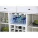 Kaliyah Antique White Server, 57"W X 18"D X 38"H, 143lbs. Wine and dine with the help of this gorgeous antique inspired dining server. Each piece features wood construction for durability and a simple antique white finish to enhance any dining atmosphere. Features: Transitional Style Solid Wood, Wood Veneer, Others Antique White Finish