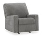 You’re in for a neat treat with this rocker recliner. Its comfy seat is covered in soft, textural upholstery, and the wide track arms are eager to support your quest for total relaxation. A side button reclines the seating to a relaxing position. Or simply rock and melt the cares of the day away.