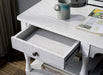 Being productive at home is a goal for every one of us. This white side desk with turned legs and multiple shelving is the perfect companion to anyone working from home. The pull-out storage drawer can hold your notebooks and writing utensils, while the smooth top offers generous workspace. Product Dimensions: 47.63"L x 29.63"H