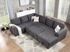 Relax in style with the Susanna sectional, featuring a pop-up bed for ultimate versatility. Designed with plenty of space for family and friends, this sectional ensures everyone has the best seat in the house. Draped in beautiful gray upholstery, its sleek and modern design adds a contemporary touch to any room. Perfect for movie nights or sleepovers, the pop-up bed provides extra sleeping space and conveniently folds away when not in use. Need more storage? The chaise lifts to reveal a hidden compartment, perfect for storing blankets and pillows.